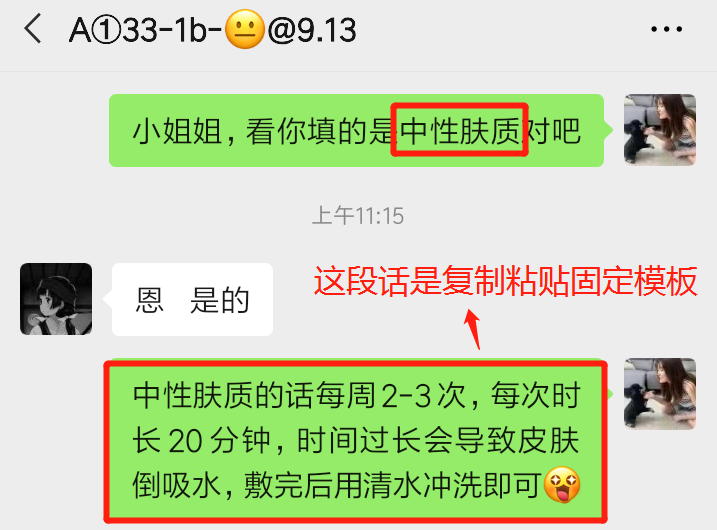 当用户主动拍张照片过来、咨询有什么产品推荐,或者是对自己面部问题的描述很细致,就代表用户在问卷中选择的最迫切的需求是真的迫切,可以针对性的进行推品动作,在接待流程中直接转化掉。